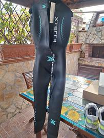 Muta senza maniche taglia m, ideale per il nuoto in acque libere e triathlon, è stata usata pochissime volte, ottima galleggiabilita'. Ideale per una donna alta circa 1,65. 1,70 cm, con corporatura normale.