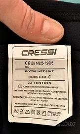 La giacca è realizzata in neoprene bifoderato , Il contorno facciale e la zona del collo sono realizzati in neoprene monofoderato per garantire comfort e minimizzare le infiltrazioni. Eventualmente ho calzari Tribord sck 330mm, tg 40-41 neri ( 15 euro extra) e pinne Mares Plana avanti quattro abs professionali, tg x-large regolabile, colore blu (65 euro extra)