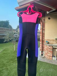 Vendo muta da donna composta da 2 pezzi salopette lunga smanicata + giacca con cappuccio e pantalone al ginocchio 5 mm + 5 mm semistagna taglia S marca SCUBAPRO - in omaggio attaccapanni