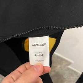 Vendo una muta shorty di colore giallo-nero della linea "Little Shark" prodotta da Cressi. Rappresenta un'ottima scelta per un bambino di 5-6 anni (110-120 cm di altezza) che non ha mai avuto esperienza con l'acqua o che sa già nuotare.