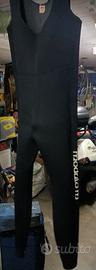 Muta uomo due pezzi pantalone a salopette in neoprene praticamente nuova, usata poche volte, spessore 5.5 mm per uso invernale ed estivo, cappuccio incorporato con cerniera fino al sottogola taglia 54 drop 6 vero affare...