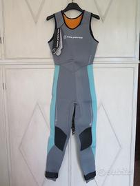 Muta invernale da vela in due pezzi da donna NEIL PRYDE, Serie Elite, Taglia Woman M (10 UK), mai indossata con cartellino, tessuto neoprene thermo Firewire Grigio-Verde acqua, costituita dal Top 3/2 mm e dal Long Jane 3 mm, come da foto allegate.