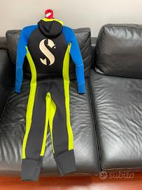 Muta lunga Scubapro da immersione, spessore 5 mm, con cappuccio integrato. Cerniera anteriore.