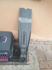 1 muta donna marca Cressi in ottimo stato taglia S2 spessore 3,5mm , nr. 4 maschere assortite per sub e snorkeling o apnea, nr. 1 paio pinne apnea/sub taglia 40/41 marca Cressi tipo "Gara 2000"