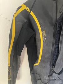 Taglia 2xl. Usata solo 2 volte;unico difetto in foto 6 Caratteristiche: Neoprene Yamamoto: Utilizza neoprene di alta qualità (spesso indicato come Yamamoto #38 o #39 a seconda della variante specifica) per garantire massima elasticità e galleggiabilità. Core Stabilizer: Un sistema di stabilità integrato che rinforza il "core" (area addominale) per un migliore controllo in acqua e una bracciata più potente. Pannelli a Spessore Differenziato: Pannelli più spessi sono posizionati strategicamente per sollevare il corpo, mentre inserti da 1,5 mm sotto le ascelle favoriscono la rotazione delle braccia. Vortex Stroke 2.0: Tecnologia sui pannelli dell'avambraccio che si espandono durante la fase di trazione per aumentare la "presa" sull'acqua. Rivestimento SCS (Super Composite Skin): Riduce drasticamente l'attrito con l'acqua per massimizzare la velocità.