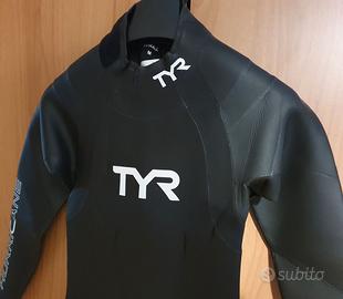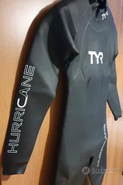 Vendo bellissima muta da triathlon e sport acquatici TYR Hurricane CAT 1, in neoprene Yamamoto ad alta densità, completa di documentazione originale. Taglia M da donna, perfetta per persone dai 50 ai 65kg e altezza da 1.50 a 1.70m. Si vende per inutilizzo, la muta è davvero tenuta bene e il neoprene è morbidissimo, segnalo solo un paio di punti riparati con neoprene liquido di lievissima entità. - Compatibile con: Orca, Swim, Cressi, TYR, 2XU, Salvimar, arena, Zone3, aquasphere