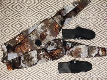 muta omer mimetica 5 mm taglia III, poco utilizzata,incluso calzari taglia II