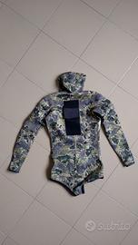 Muta spaccato/foderato Marea Sub fatta su misura in ottime condizioni, usata per qualche uscita l'estate scorsa 2025. La Marea non vende più mute di taglia, pertanto sono stato costretto a farmela fare su misura. Rispecchia molto la taglia S, con gambe e braccia leggermente più strette. Sono alto 170 cm x 62 kg di peso. La muta è in ottime condizioni molto elastica e calda. La giacca possiede un rinforzo interno morbido retro sternale per il caricamento del fucile ed è di colore mimetico camu. Presenta un velcro femmina attaccato sulla schiena per poter aggiungere un particolare schienalino artigianale che consente tutti i movimenti senza alcun impaccio. È come se non esistesse. Uno schienalino pesa 1,8 kg e l' altro 3,4 kg e va bene sia per una tre millimetri che cinque o sette. Lo schienalino va applicato prima di indossare la muta se si è da soli. In compagnia è possibile anche farlo applicare dal proprio compagno dopo aver indossato la giacca. I pantaloni sono neri, con toppe rinforzate sulle ginocchia. Regalo anche due cinture elastiche in ottime condizioni. Posso fornire altre foto all'occorrenza. Purtroppo nell'annuncio ne sono consentite solo 6. Spedizione gratuita con corriere SDA in tutta Italia oppure disponibile il ritiro in zona Ischia porto o Molo Beverello Napoli. N.B. nella casella spedizione ho inserito 1 perché 0 non è un numero valido.