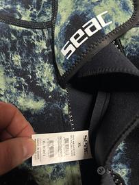 Vendo MUTA MONOPEZZO PER PESCA SUB IN APNEA SEAC BODY FIT CAMO 1.5MM coem nuova usata una sola volta taglia xl