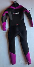Muta semistagna Mares Ice Skin She Dives 7mm – donna, taglia 4 Vendo questa bellissima muta semistagna Mares in colorazione nero/viola, acquistata nuova nel 2023 e indossata solo due volte. Condizioni pari al nuovo, senza difetti, strappi o usura visibile. 🔹 Perché questa muta è speciale: La Ice Skin She Dives non è una semplice muta umida — è una semistagna progettata per acque fredde, con tecnologie da top di gamma a un prezzo accessibile. Caratteristiche tecniche: Neoprene ultra-elastico 7mm — caldo, morbido, comodissimo da indossare Cerniera T-Zip Master Seal — impermeabile, riduce al minimo l'ingresso d'acqua Collo, polsi e caviglie in Glideskin per una tenuta ermetica Fodera interna termoprotettiva a contatto con la pelle Taglio preformato specifico per il corpo femminile Tasca integrata con zip sulla coscia destra Rinforzi sulle ginocchia per maggiore durata Cappuccio preformato incluso (stesso colore, stesso materiale) ✅ Ideale per immersioni in acque fredde e temperate (lago, mare mediterraneo in primavera/autunno, acque nordiche) ✅ Perfetta per sub, apneiste o chi si avvicina alle immersioni in acqua fredda ✅ Prezzo di listino Mares: 549 € 📦 Spedizione cura e imballaggio accurato. Disponibile anche per visione/ritiro a Milano.