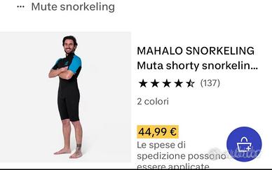 Vendo muta shorty (maniche corte) Tribord (Decathlon) modello Mahalo per snorkeling, nuovissima, ancora con etichette, mai indossata nemmeno una volta!