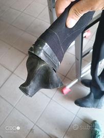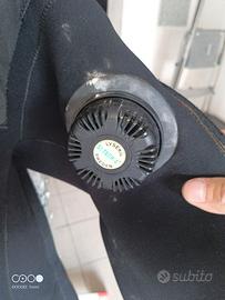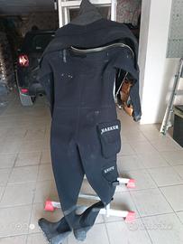 Vendo ottima muta stagna da lavoro marca icediver. Indossata in un unica immersione. Neoprene rinforzato, cerniera in ottone. Taglia S stivali in gomma tg 42 (ma calzano bene fino ad un 44). Da sostituire un polsino in lattice.