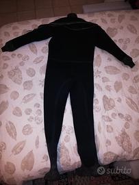 Muta in neoprene BARE in ottime condizioni. Colletto in neoprene e polsini in silicone, Le misure, oltre a quelle scritte sull'etichetta, non le so. Quello che ti posso dire è che sono alto 168 cm, 42 di piede e corporatura normale. La muta mi sta leggermente grande, ma non per questo la sto vendendo. L'ho usata parecchie volte e devo dire che con un sottomuta da 100 (anche con acqua a 7 / 10 gradi), il freddo non l'ho mai patito.