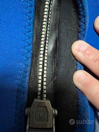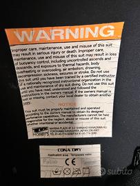 Muta stagna in neoprene Mobbys taglia L scarpetta 27 (42-43) in buono stato. Polsini e collare usurati esternamente ma in buono stato internamente sulla pelle. Cerniera sempre con paraffina e bretelle interne ancora elasriche ma con la fibbia di attacco alla muta interna da rifare in quanto consumati e staccati. Regalo cavigliere da 500 gr e, se lo trovo dal trasloco, anche sottomita in pile rasato taglia L