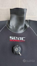 Vendo per taglia sbagliata, muta stagna WARM DRY 4 MM MAN SEAC in neoprene, ancora perfetta, con cerniera in plastica nuova (fate meno di 10 immersioni da quando l'ho messa), polsini nuovi (sostituiti gli originali e leggermente allungate le maniche), predisposizione pee valve.