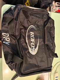 Vendo muta stagna Rofos neoprene dry tech 3,5 mm da uomo tg. 4 con frusta due cappucci Rofos in neoprene di diverso spessore,calzari Rofos tg43,borsa Rofos e in regalo due paia di guanti per cessata attività subacquea.La muta è in ottime condizioni come polsini collo e cerniera mai cambiati unica cosa se non si vogliono tagliare sono le fettuccie copriicuciture interne staccate che volendo si possono sistemare con semplice colla al neoprene,ma le cuciture sono stagne.Possibilità di acquistare pinne Mares con cinghiolo abbinabili con €30 extra.No spedizione o consegna a corrieri pagamento al ritiro salvo presa visione