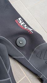 Vendo per taglia sbagliata, muta stagna WARM DRY 4 MM MAN SEAC in neoprene, ancora perfetta, con cerniera in plastica nuova (fate meno di 10 immersioni da quando l'ho messa), polsini nuovi (sostituiti gli originali e leggermente allungate le maniche), predisposizione pee valve.