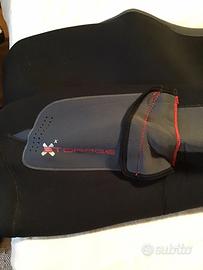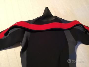Muta stagna uomo taglia XL in neoprene 5.5mm fodera interna rossa,con cuciture sigillate , altezza 175/184cm, torace 98/104 cm. Dotata di calzari semirigidi, bretelle, 2 valvole carico scarico, tasca cosciale, polsi in neoprene Acquastop, collare in glide skin,scarponcino 42/44, cappuccio in neoprene con valvola scarico aria, sacca e frusta di carico,colore nero con inserti rossi,