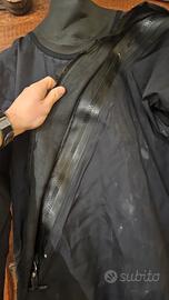 Muta Stagna in Trilaminato taglia xxl, per persone alte (185cm-195cm), cerniera nuova, collo e polsini in neoprene, rifatti da poco ma rovinati in qualche punto e riparati, valvole funzionanti, piedi in neoprene per numeri da 45 a 48. Sottomuta scubapro artic plus xxl.