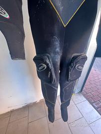 Collo in neoprene superstretch da 3 mm da risvoltare, sagomato per una tenuta stagna perfetta ma senza oppressioni.