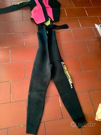 Dive suit Technisub Minorca, taglia 4, in discrete condizioni, scolorita lievemente su alcune parti, salopette e giacca con cappuccio