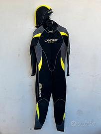 Articoli in vendita (usati pochissimo, ottime condizioni): * Muta: * Marca: Cressi * Modello: Castoro * Taglia: 48-50 * Spessore: 5mm * Condizioni: Usata pochissimo, nessun taglio o strappo, cerniera perfettamente funzionante. * Prezzo: €80 * Erogatore: * Marca: Cressi * Modello: MC9 * Ultima revisione: 2 anni fa. * Prezzo: €80 * GAV: * Marca: Mares * Modello: Prestige * Taglia: M * Prezzo: €140 * Zaino Porta Attrezzatura: * Regalo per chi acquista tutto il set.