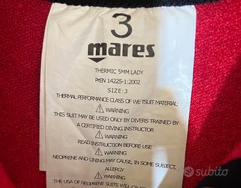 Vendo muta sub donna marca Mares nuova, 5mm, mai usata, da notare il cartellino.