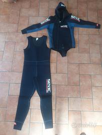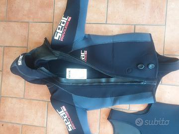 muta da sub 2 pezzi seac. usata solo 3 volte per corso sub da mio figlio. le condizioni sono pari al nuovo e resto disponibile per visioni o prove