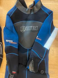 Tuta sub Mares 5mm umida – taglia 46 – ottime condizioni Descrizione: Vendo tuta da immersione Mares 5mm in ottime condizioni, usata pochissimo e sempre sciacquata e conservata correttamente. Taglia 46 (equivalente a M). ✅ Caratteristiche: •Spessore 5mm, ideale per immersioni in acque temperate (18–24°C) •Neoprene super elastico per massimo comfort e libertà di movimento •Cerniera posteriore con chiusura stagna e linguetta protettiva •Rinforzi su ginocchia e spalle per una maggiore durata •Collo con chiusura regolabile in velcro •Ottimo isolamento termico e vestibilità aderente Tuta perfetta per chi vuole iniziare o per chi cerca una seconda muta di qualità Mares a un prezzo conveniente. Condizioni eccellenti, nessuno strappo o difetto.