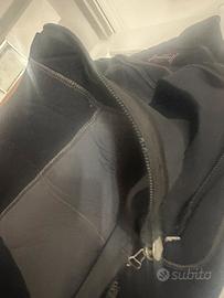 La muta è in buone condizioni generali, usata poco, ma la cerniera posteriore è rotta e va sostituita (riparazione semplice presso un centro Mares o negozio sub).