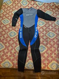 Vendo mute sub come segue : 2 x Mares semistagne 7 mm con cappuccio - Uomo taglia L e donna taglia M , 1 x muta uomo Taglia L Seac 3,5 mm, 1 x MutaTaglia M donna 2 mm