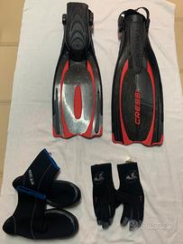 Vendo Muta da Sub marca Mares taglia 3 da 3mm modello da uomo, compreso Scarpette Seac taglia M, Guanti Tribord da 3mm, Pinne Cressi Taglia M-L il tutto utilizzato soltanto per 2 immersioni, in più regalo borsa per trasportare tutti gli accessori. Per qualsiasi informazione contattatemi. Scambio a mano in Pescara o Chieti. NO SPEDIZIONI.