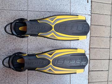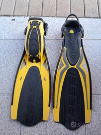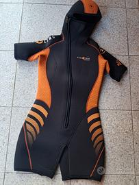 Muta Aqualung Safaga due pezzi spessore 5,5mm taglia S (donna altezza mt 1,60/1,70 peso kg 50/55). Pinne sub ara Cressi Thorn taglia XS/S per piede 38 circa