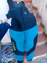 vendo muta usata modello vecchio ma molto resistente ottima per chi non vuole spendere molto ed iniziare la pesca subacquea, ha solo una scucitura sulla caviglia riparabile con filo e neoprene liquido