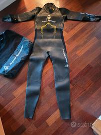 praticamente nuova. usata per una gara e basta. taglia m. io sono alto 180cm e peso 70 forse per me era un fin troppi precisa.