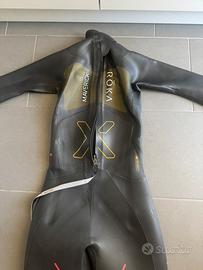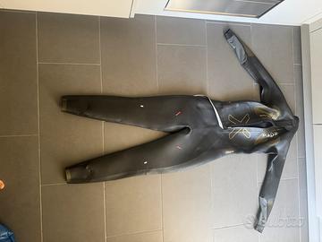 Usata solo per un 70.3 regalata e cambio per taglia errata. Presenta solo 2 tagli riparati con la colla come si vede in foto ma che non pregiudicano l'utilizzo. 1500$ nuova. Triathlon