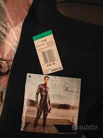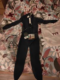 Vendo per inutilizzo, acquistata e mai usata, muta da triathlon, marchio tyr, modello Hurricane categoria 5, da uomo taglia M (ma và benissimo anche per donna, io l'ho acquistata per me altezza 1.65 peso 60). Allego etichetta taglia male.