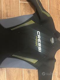 Muta umida monopezzo da donna Cressi Fast da 5 mm in neoprene bifoderato, nera e grigia con accenti giallo fluo, Taglia 2 (S)