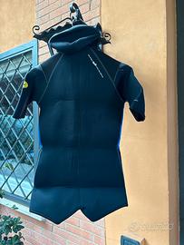 Vendo muta technisub uomo taglia 2 (small ) composta di muta integrale con zip sulla schiena con spessore 5 mm e sopramuta a maniche corte con zip frontale sempre dello soesosr edi 5 mm.