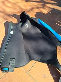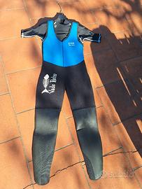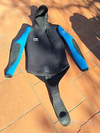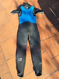 Muta umida per torrentismo pantaloni a salopette taglia 2, giacca con cappuccio con chiusura a zip e coda a castoro con velcro. Protezioni contro sfregamento su ginocchia, gomiti e fondoschiena. Muta in perfette condizioni, sia interne che esterne. Utilizzata solo 1 volta, quindi in condizioni perfette!!
