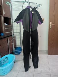 É una muta modulabile, le maniche possono essere allungate aggiungendo le estremità inferiori.
