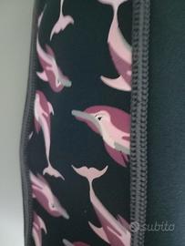 Vendo 2 mute da snorkeling corte, uomo e donna, 2,5 mm in neoprene. Nuove, usate una sola volta, praticamente uguali, l'uomo ha i delfini grigi e la donna rosa