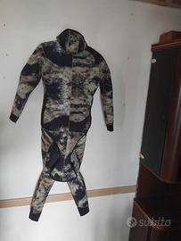 foto 1-2.vendo muta neoprene bifoderato yamamoto Camo 5mm 2 pezzi (giacca+salopette) nuovissima guarnizioni stagne a polsi, caviglie e contorno facciale 80€