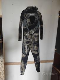 foto 3-4 muta neoprene bifoderato abysstar Camo 2.5 mm monopezzo guarnizioni stagne a polsi e caviglie + cappuccio 2.5 mm Camo 80€