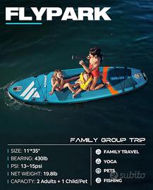 FlyPark Blue Std - Tavola SUP Gonfiabile Pompa Pagaia Zaino Sacca.