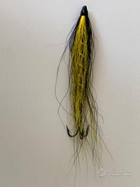 n.21 Esche artificiali con amo triplo (treble hook). Fatte a mano, nuove, di diverse misure. Confezionate nella scatoletta, come da foto.