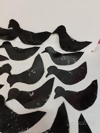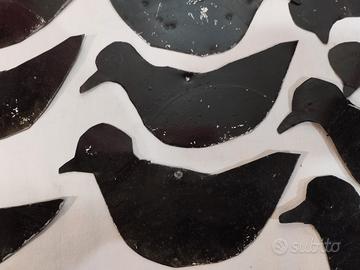 Sagome uccelli in lamiera vintage per richiamo caccia, costruzione artigianale, sarebbero da riverniciare perché pitturati in modo un po' approssimativo. Il lotto è di 22 pezzi.