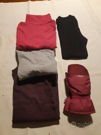 N. 3 maglie termiche vari colori come in foto / N. 1pantalone termico nero / N. 1 paio di guanti - Marca: WEDZE --- TAGLIA 10 ANNI / PREZZO: 25 EURO