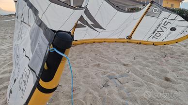 Kite in ottime condizioni. vendo per cambio attrezzatura a prezzo scontatissimo causa un piccolo foro sulla leading edge accanto alla valvola di gonfiaggio, probabilmente dovuto all'utilizzo e riparato con doppia patch dentro e fuori.. Questo kite non ha bisogno di presentazioni, ci puoi fare di tutto, è leggerissimo, resistentissimo e super performante. Disponibile, a parte, anche barra Sync 55cm come nuova.