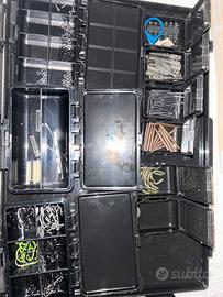 Vendo Nash Box Logic large che all’interno ospita 1 scatola portaoggetti a basso profilo a 8 scomparti (D: 11 cm x 8 cm x H 1,7 cm) 10 Divisori piccoli 1 scatola portaoggetti a basso profilo a 6 scomparti (D: 11 cm x 8 cm x H 2 cm) 1 Scatola portaoggetti a basso profilo a 2 scomparti (D: 11 cm x 8 cm x H 2 cm) 6 Mini scatole (D: 3,5 cm x 3,5 cm x H 2 cm) 1 Piccola scatola per ganci (D: 11 cm x 8 cm x H 1,7 cm) 1 scatola dell'ago (D: 20,2 cm x 3,2 cm x H 2,4 cm) Compreso di tutta la buffetteria all’interno Prezzo €50 non trattabili NON SPEDISCO solo ritito a mano